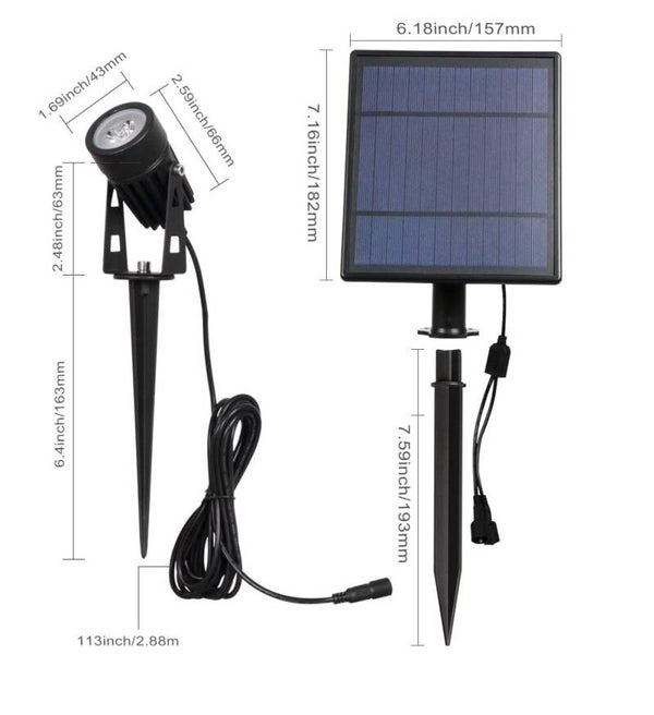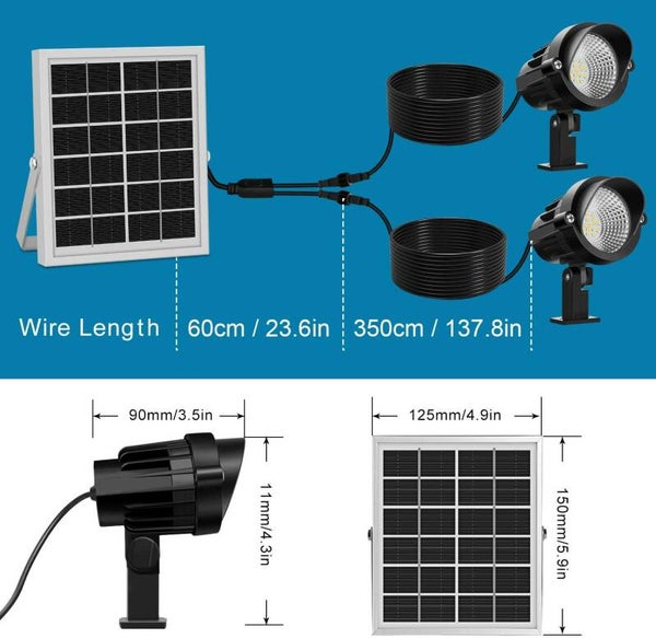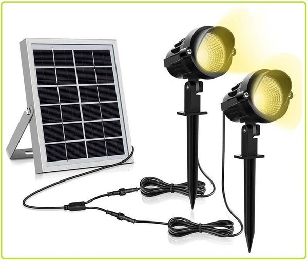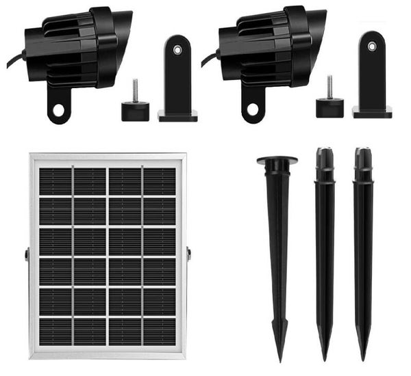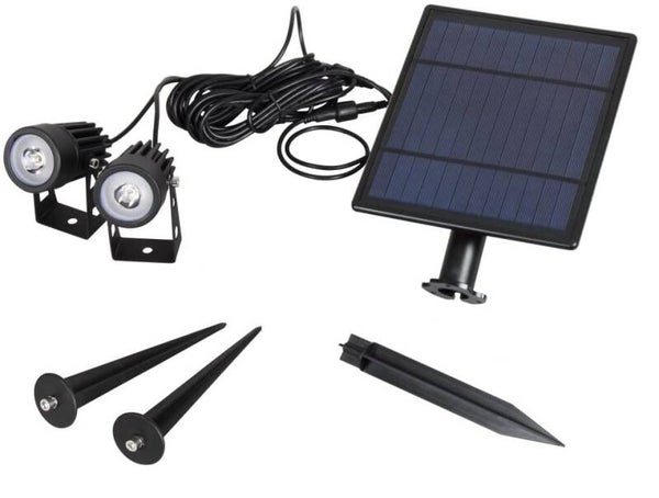 2 stuks LED tuinspots met Solar paneel. (Middel formaat spot 90 mm )